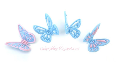 These are all 2-toned, but i also made some in white, leaving out the little parts, creating a beautiful lace-effect. I´m sure the butterflies will also look great with a touch of edable gold paint, or with other dusting-colors - Like rainbow-colours and sparkles? :)